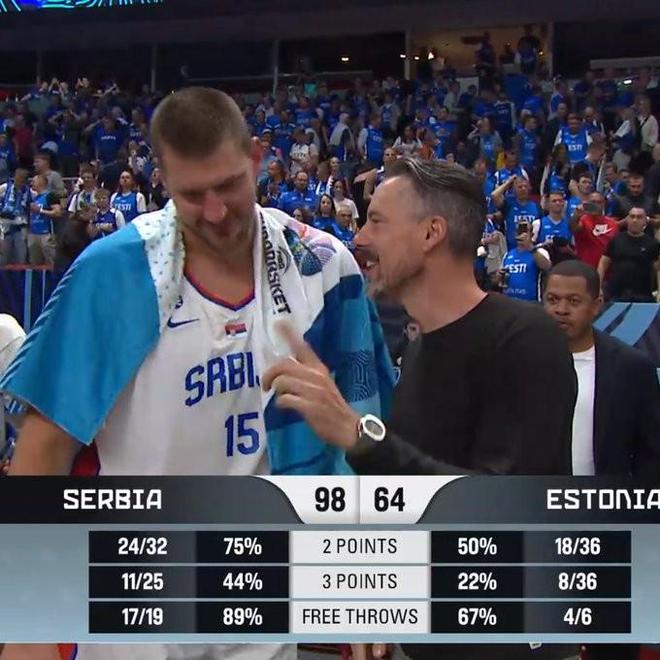 今天,北京的时间,在欧洲冠军的男子篮球队的第一轮比赛中,塞尔维亚篮球队击败了98-64的爱沙尼亚篮球队,取得了巨大的开局。在这场比赛中,塞尔维亚男子篮球队比爱沙尼亚男子篮球队的对手强大,他们很快以34分击败了对手。杰基奇(Jokic)是塞尔维亚明星为掘金队效力的,这场比赛中的“汗水有点”。他打了23分钟,获得11分,10个篮板和7次帮助,获得3杆,1个三分球中的0分,5个罚球中的5个,并犯了3个错误,在游戏中的最高加上和负值为+39。值得一提的是,掘金公司的老板克罗恩克(Kroenke)也在这场比赛中观看比赛。比赛结束后,Natkroenke遇到了Jokic并与他交谈,两人在谈话中度过了愉快的时光。在今年的NBA休赛期,克罗恩克负责掘金的人员的变化和操作。 nUggets还介绍了Cameron Johnson和Bruce Brown等强大的球员。 Jokic还承认了掘金的操作此标签。