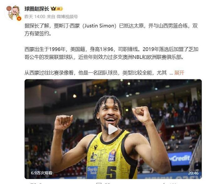 据著名的篮球媒体人物“球圈的Zhao检查员”称,Shanxi的新外国帮助贾斯汀·西蒙(Justin Simon)已抵达台湾,目前正在接受测试训练。根据当前情况,这种防守强者有望与Shanxi团队签订合同。西蒙(Simon)29岁,高1.96米,宽2.08米。他是2019年的NBA Undraft。他加入了NBA公牛队领导下的发展联盟团队的短片。近年来,他主要活跃于欧洲联赛和澳大利亚NBL联盟。西蒙的身体健康,是一个搬到法庭的人。他具有出色的防守技巧,他的专业态度也值得钦佩。在2020 - 21年在NBL Linawara Hawks中,他赢得了最好的防守联赛球员并偷走了国王。西蒙(Simon)卡林(Kalin the Bundesliga)也赢得了最佳防守球员并偷走了国王,他的防守能力似乎非常强大。 Shanxi团队参加了BE上个赛季的ST常规天气历史记录,第二次胜利和12次失利,第二;它还在季后赛中进入了四个半决赛。在休赛期,上赛季Shanxi球队的四名外国球员彼此离开,这标志着球队的球队,并协助了Goodwin国王加入了上海队,而Faye也可以加入上海团队。此外,在休赛期,Shanxi团队使用了Diallo和Kyle III的合同优先权,但他们无法留下。 Diallo参加了西甲的Baskenia团队,Kyle III参加了日本B联赛。我们中的Dfour总是相信Shanxi选择外国球员的愿景。尽管上个赛季的三位超级外国球员离开了Shanxi,但他们仍然能够在休赛期签下更强大的外国球员,并且在新赛季中仍然有可能使球队提高水平。 Diallo比本地CBA球员具有多个级别的身体健康,并且是前进的独特外国球员;古德温(Goodwin)和凯尔三世(Kyle III)也有能力,所以当然,他们不能留下来很可悲。以前,Shanxi球队一直是季后赛一侧的一支球队。上个赛季的爆炸是由许多因素引起的。我希望Shanxi队在新赛季可以保持黑马的姿势,并继续争取决赛和冠军。就广东队而言,自从上赛季本赛季以来,他们还为四名外国球员提供了,特雷·伯克(Trey Burke)的能力很差,并且是第一个离开球队的球员。巴兹利回到NBA夏季联赛比赛时受伤,永远不会返回广东球队。三届狮子队冠军莫兰德(Morand)曾为广东队(Guangdong Team)效力了一名短期工人,现在又回到了借助借助球队。最终,经验丰富的吉伦沃特(GillenwaterCBA或NBL游戏。但是,Fubon Warriors最近宣布将加入Gillenwater,他将在新时代参加台湾省联赛。 6月24日早些时候,中国官方网站兴奋剂中心发布的信息违反了兴奋剂,表明,新疆队Harrell和广东团队的外国帮助,外国团队的外国援助吉伦沃特(Gillenwater)违反了刺激性,并被暂停了CBA。尽管CBA并未对事件涉及的政党实施制裁(因为野外法院不允许他们。 (Gillenwater)尚未发布,因此他决定参加P联盟。P联盟不再违反相关政策,并且不再违反相关的法律tions。